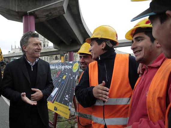 Macri hizo el anuncio desde la bajada que conecta la autopista con las avenidas San Juan y 9 de Julio, que se encuentra ahora transitoriamente cerrada al tránsito por las obras de construcción de los túneles que unirán el Metrobus 9 de Julio con Plaza Constitución.
