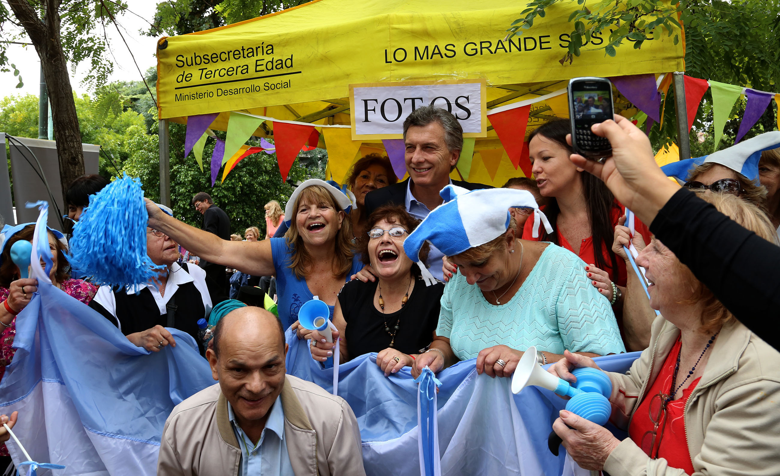 Macri compartió esta mañana una serie de actividades recreativas en la tradicional plaza ubicada en Gaona y Donato Alvarez, en Caballito, en el marco de un evento organizado por la Subsecretaría de la Tercera Edad para brindar información a los adultos mayores sobre el funcionamiento de las Postas Digitales y los distintos programas de protección social que forman parte de la red “En todo estás vos”.