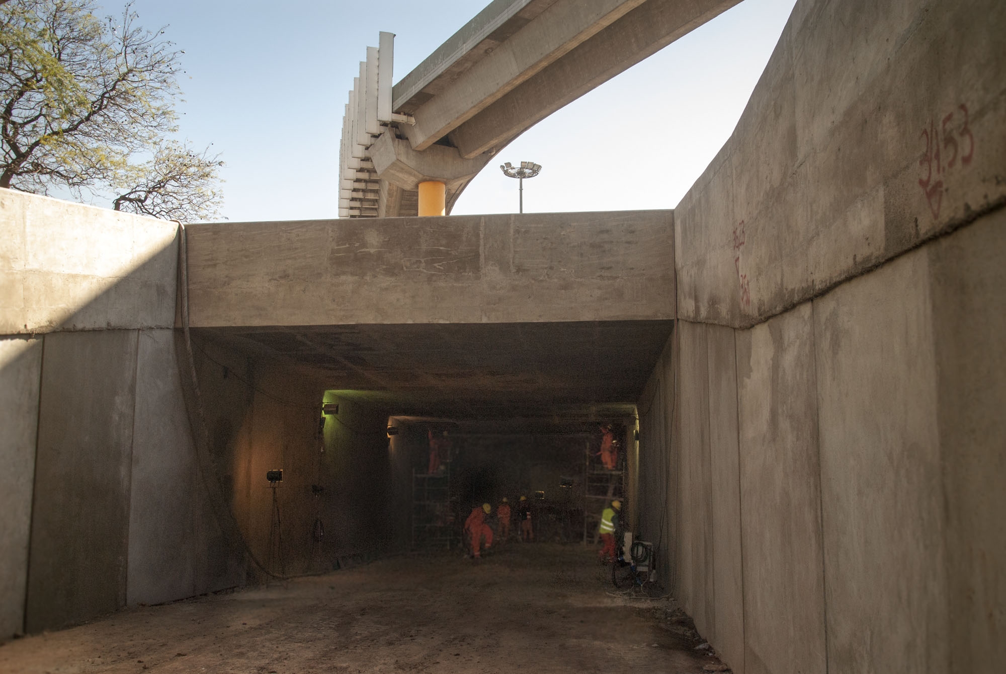 Estos dos túneles, que serán de uso exclusivo para las líneas de colectivos que recorren los carriles del Metrobus, están siendo construidos en el cruce de las avenidas 9 de Julio y San Juan con el objetivo de agilizar la conectividad en el extremo sur del corredor.