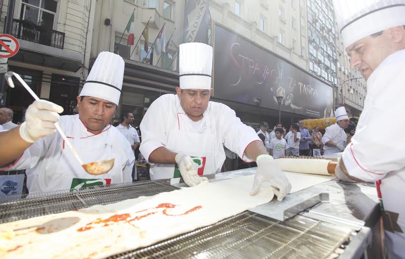 Los Maestros Pizzeros de APPYCE (Asociación de Propietarios de Pizzerías y Casas de Empanadas), con el apoyo del Ministerio de Desarrollo Económico y la Secretaría de Atención Ciudadana de la Ciudad, realizaron el domingo la pizza más larga de Buenos Aires en un evento en el que participaron más de cinco mil vecinos sobre la calle Corrientes.