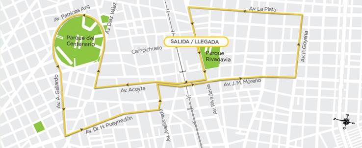 Salida por Av. Rivadavia hasta Av. Acoyte, luego por ésta hasta Av. Díaz Vélez, tomando por la circular Av. Patricias Argentinas hasta Av. Ángel Gallardo. Por ésta hasta Av. Honorio Pueyrredón, luego doblaron por Av. Avellaneda hasta Av. Acoyte, continuando por Av. José María Moreno, hasta Av. Pedro Goyena. Doblaron por Av. La Plata hasta Av. Rivadavia, luego por ésta hasta Campichuelo donde finalizó el recorrido.