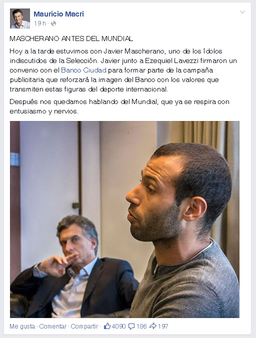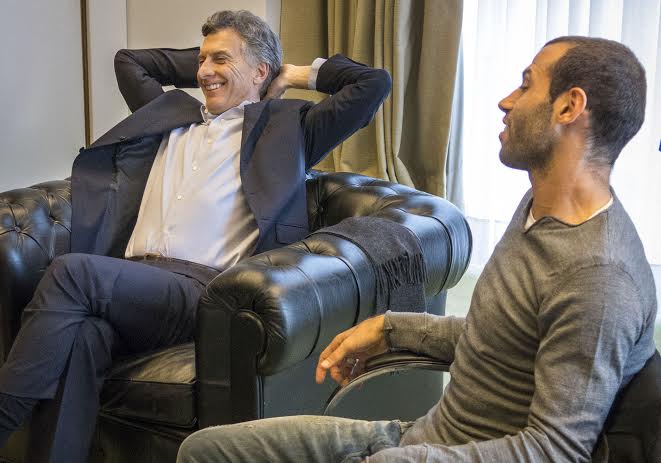 Macri destacó que ambos futbolistas “son embajadores de la Argentina en el mundo porque demuestran lo importante que es para un grupo humano trabajar en equipo y con actitud positiva y simbolizan con su esfuerzo lo que nosotros queremos dentro de este banco, dentro del Gobierno y en la relación con la gente”.