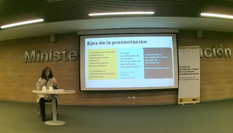 La reunión contó con la participación de Nancy Montes, socióloga y especialista en técnicas de medición de indicadores sociales y demográficos (UBA). Durante su disertación, explicó cómo los resultados de las pruebas de evaluación de los aprendizajes son clave para el planeamiento de las políticas educativas de la Ciudad y, más globalmente, abordó el impacto de los datos en la mejora continua del sistema.