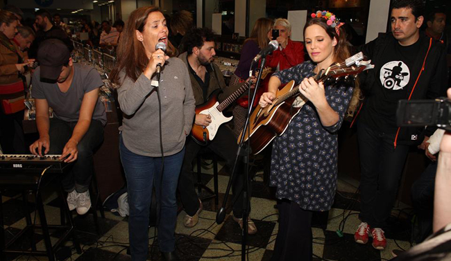 En la esquina de Zivals, la actividad comenzó con Fabián Manuk y luego se presentaron Sol Mihanovich y el músico rosarino Rubén Goldín. Para el cierre, la presentación de Me darás mil hijos hizo las delicias de todos los melómanos que recorrían la disquería y que se agolpaban en la puerta para disfrutar de las canciones de la banda.
