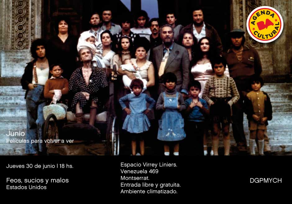 "Feos, sucios y malos", un clásico entre los clásicos del cine mundial, podrá verse este jueves a partir de las 18 en el Espacio Virrey Liniers (Venezuela 469). Con la dirección del italiano Ettore Scola y la participación de Nino Manfredi, Francesco Anniballi, Maria Bosco, esta película de 1976 recorre de punta a punta las costumbres romanas.