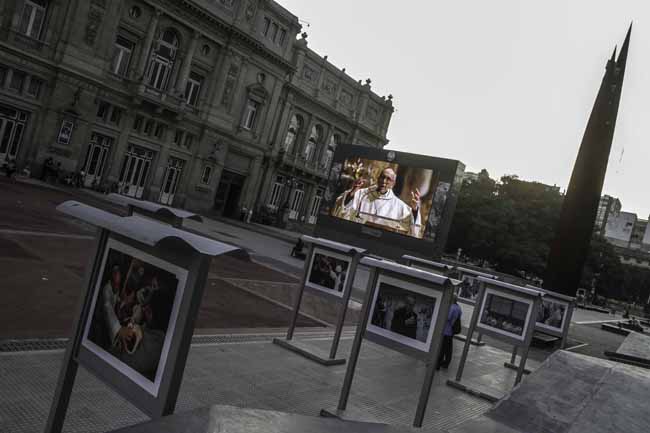 El Gobierno de la Ciudad de Buenos Aires rinde homenaje al Papa Francisco con motivo de su primer cumpleaños como Sumo Pontífice, a través de una muestra fotográfica, en la Plaza del Vaticano, Viamonte y Cerrito, que lo retrata desde sus tiempos de Arzobispo de Buenos Aires.