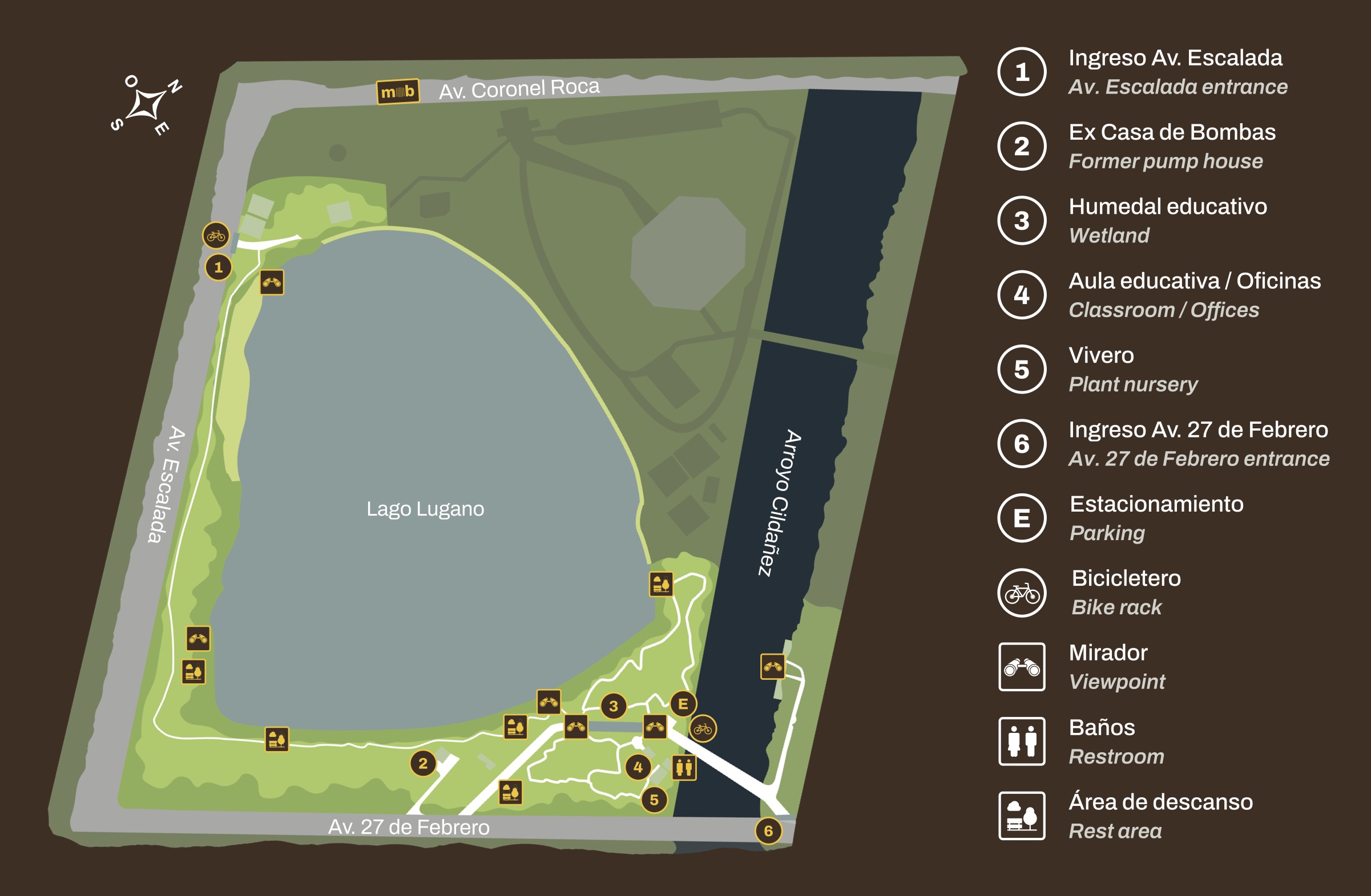 Para acceder a la Reserva, bordear el Lago Lugano hasta el portón de ingreso (400 mts)