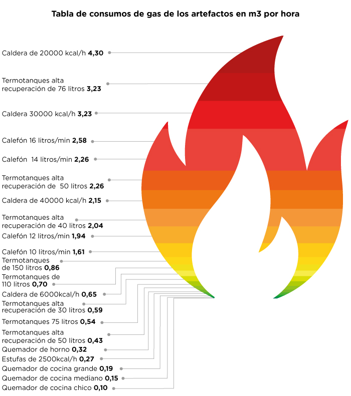 Cuánto consumen tus equipos a gas por cada hora de funcionamiento: