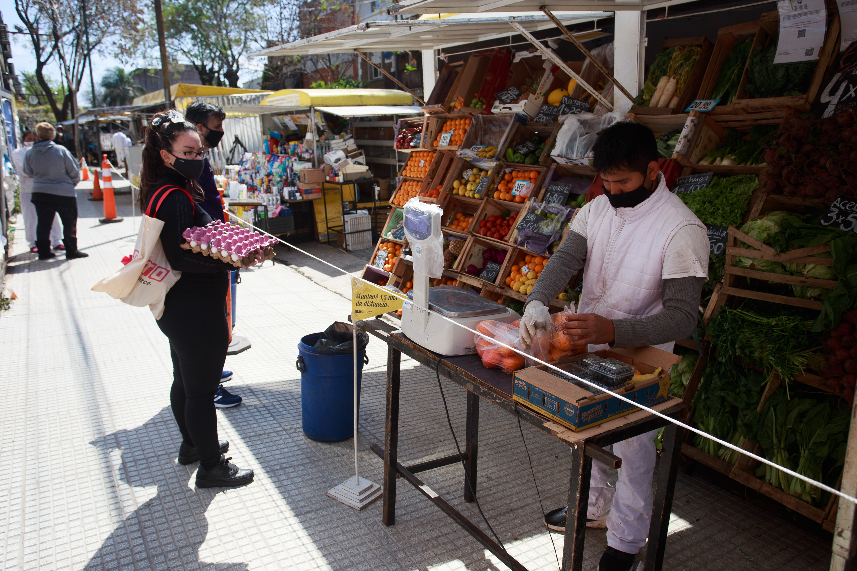 El protocolo de seguridad e higiene que se aplica dentro de las ferias barriales contempla que cada una tenga accesos en sus extremos. Además, los vecinos que concurren no pueden estar en contacto con la mercadería, tienen que respetar entre sí una distancia mínima de 1,5 metros y usar tapabocas.