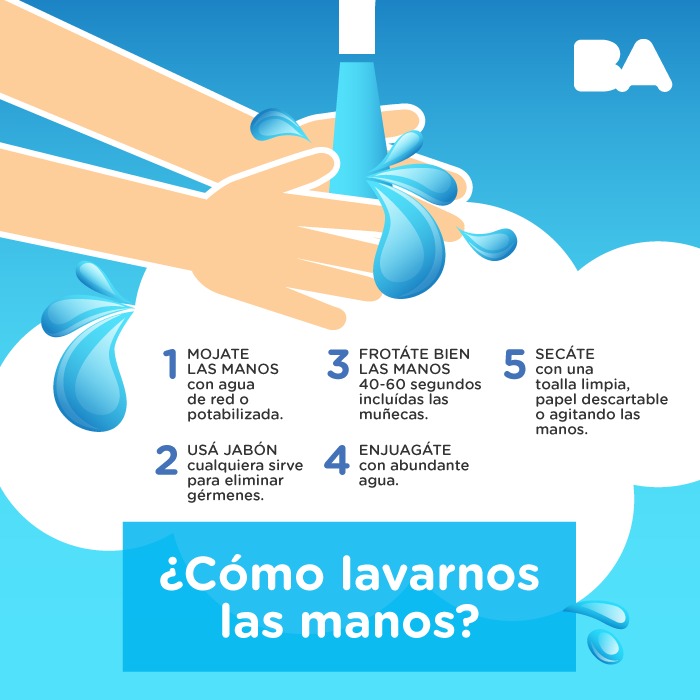 Evitá tocarte la cara con las manos sin antes haberte lavado con agua y jabón o alcohol en gel.