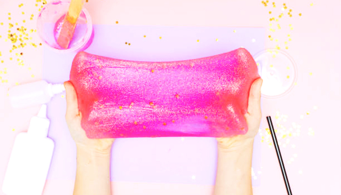 Preparar una masa elástica casera con purpurina, estrellitas o elementos crujientes para hacer una mezcla crunchy.