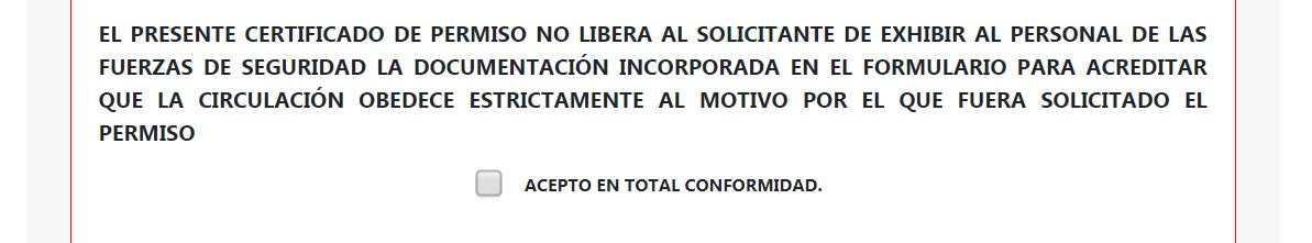 Marcar la tilde en la que se compromete a llevar la documentación consigo.