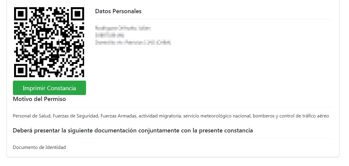 Desde el botón verde bajo el código QR se puede imprimir la constancia.