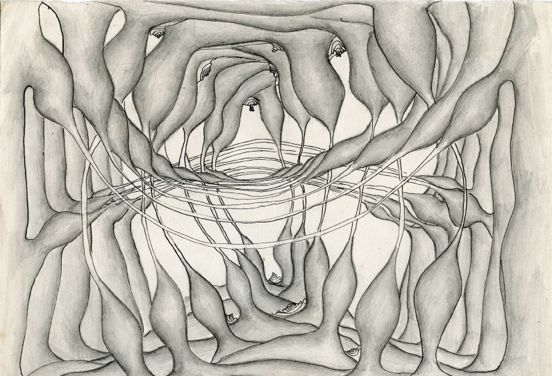 Los dibujos de Martha Zuik sintonizaron estos cambios profundos a lo largo de estas décadas sabiendo combinar modulaciones de la línea con figuraciones fantásticas. En un primer momento focalizó en siluetas con evocaciones de faunas y floras ficticias diferenciadas del fondo vacío, para modelar imágenes protoplasmáticas, celulares, de universos cósmicos y de anatomía sexual femenina que ocupan la superficie del soporte con presencias, a su vez, de tradiciones ornamentales de una monstruosidad sensual. A su vez, y en paralelo, la línea ondulante se fue rectificando y segmentando hasta aparecer con preeminencia en los 70 como evocativa de gráficos vectoriales del lenguaje cibernético configurando paisajes y figuras con un dejo de distancia que ocultan sus rasgos particulares. La muestra exhibe nodos conceptuales de la dibujística de Zuik desde sus inicios, aún previos a su primera exposición individual en Galería Pizarro en 1958 con apenas 17 años. El recorrido de esta exposición se asemeja a una línea que, en su unicidad, se torna orgánica, curva y expansiva para configurar diversas imágenes apelativas de una mirada certera y perspicaz.