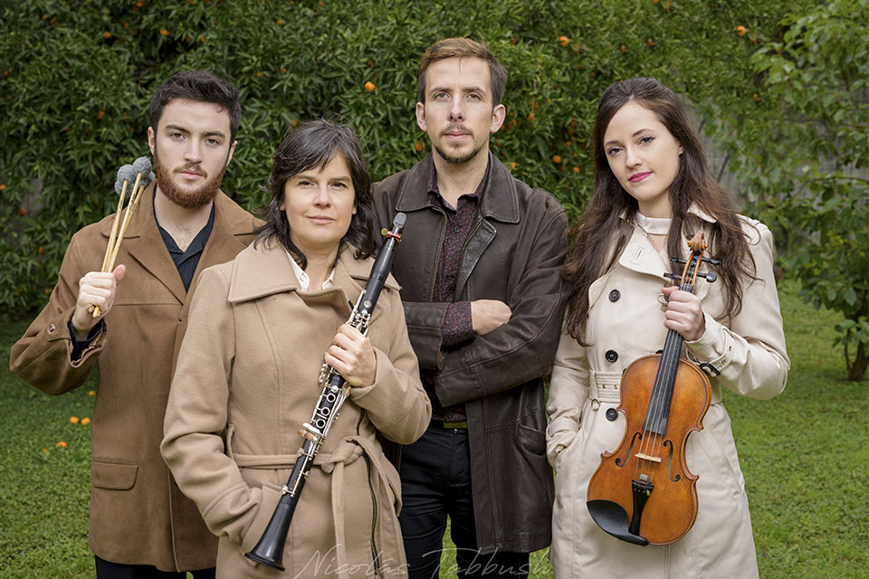 Son Mas Trío: Constanza Goldenberg en violín, Marina López en clarinete y Javier Mas en piano. Y junto a Gabriel Waisbein en vibráfono y accesorios forman Cuarteto Visiones.