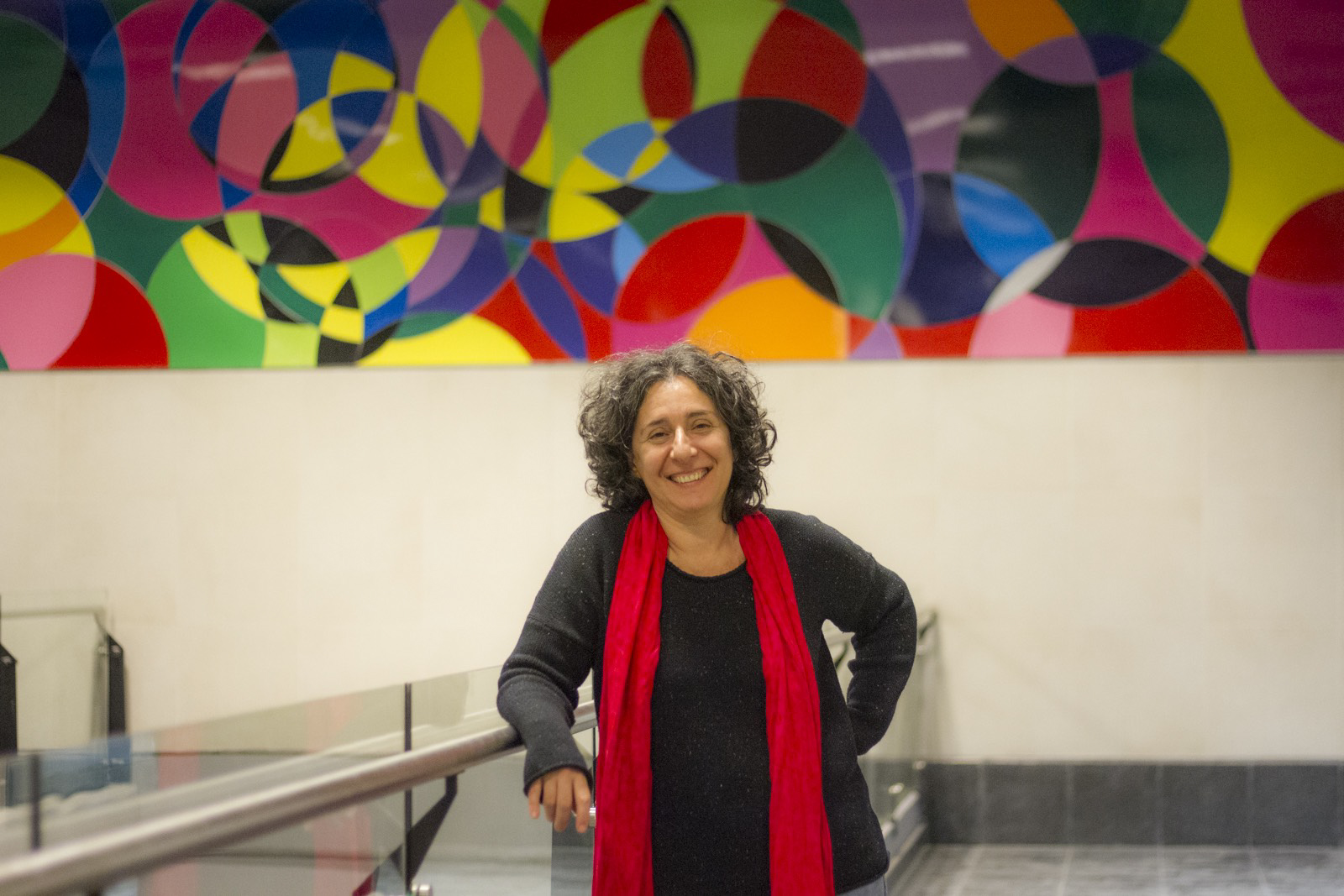 Oriunda de Buenos Aires, la artista plástica y docente realizó muestras en Argentina, Brasil, Estados Unidos y Francia. Buenos Aires ya cuentas con dos intervenciones de su autoría en el espacio público: “Notas de Luz”, bajo la autopista Buenos Aires-La Plata frente a La Usina del Arte y “Nudo de Autopista”, emplazada en Av. San Juan y Av. 9 de Julio. El nombre de la obra es "Rotación" y está formada por distintas piezas de diversos tamaños y colores que representan plantas y flores. Son partes de un rompecabezas basado en la relación de la pintura y la luz, que para la artista retrata la realidad del viajero del Subte a través de la geometría y busca generar un espacio de naturaleza en medio de la construcción.