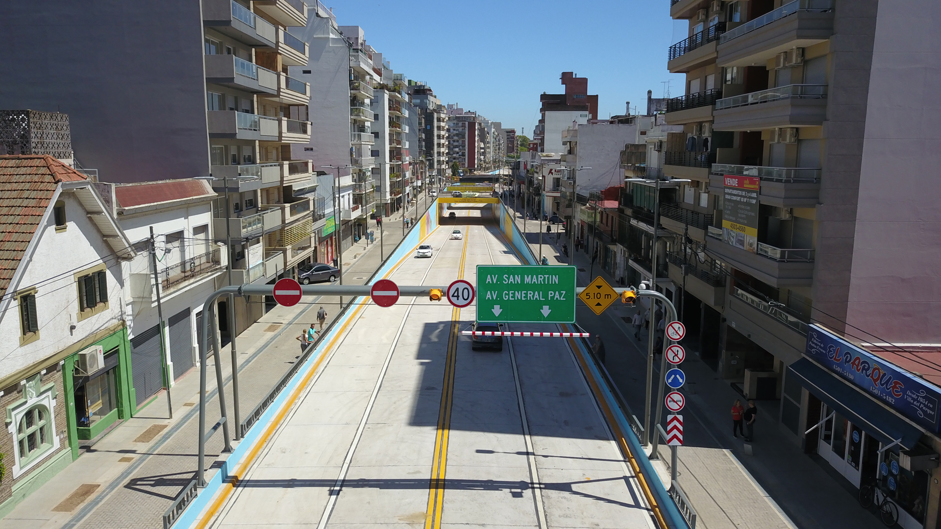 La ejecución de la obra incluyó la construcción de calles de convivencia a los costados del túnel para el acceso de frentistas y la puesta en valor de la zona con nuevas veredas, más iluminación, barandas de protección, arbolado, señalización y nuevo mobiliario urbano.