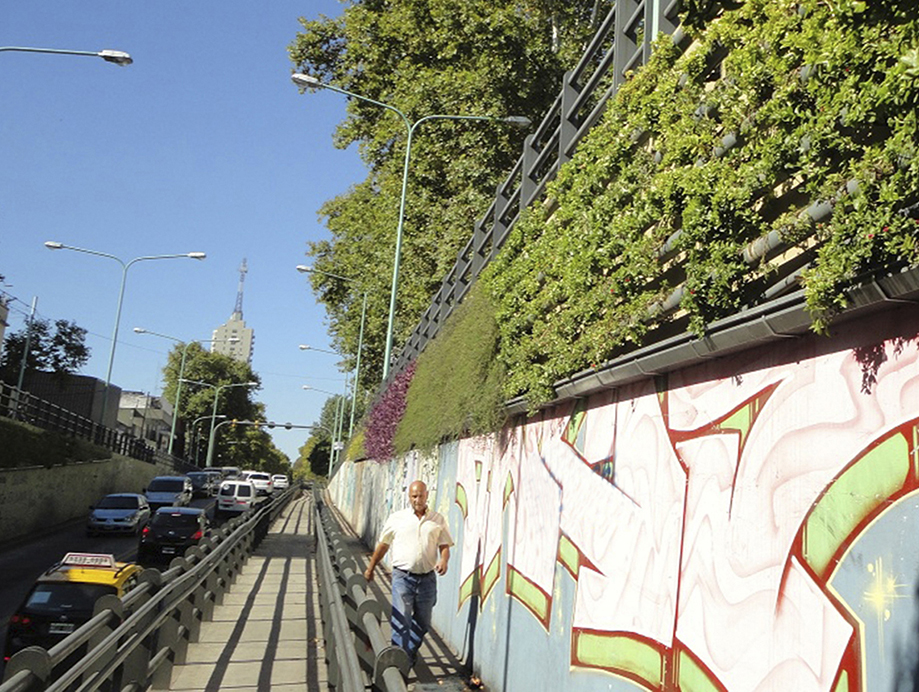 Este sistema permite la incorporación de superficie verde en sitios sin superficie horizontal libre, mejorando las condiciones estéticas y ambientales del lugar.