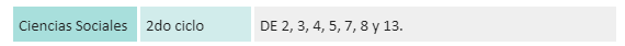 A continuación se indican los DE que recibirán formación situada en Ciencias Sociales: