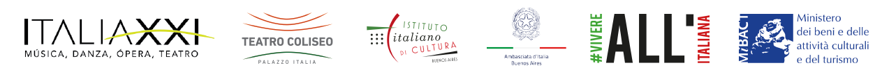 Este espectáculo es parte del ciclo ITALIA XXI, producido por Teatro Coliseo e Istituto Italiano di Cultura, con el apoyo institucional de la Embajada de Italia, Vivere All’Italiana y el Ministerio de Bienes Culturales y Turismo de Italia (MiBACT).