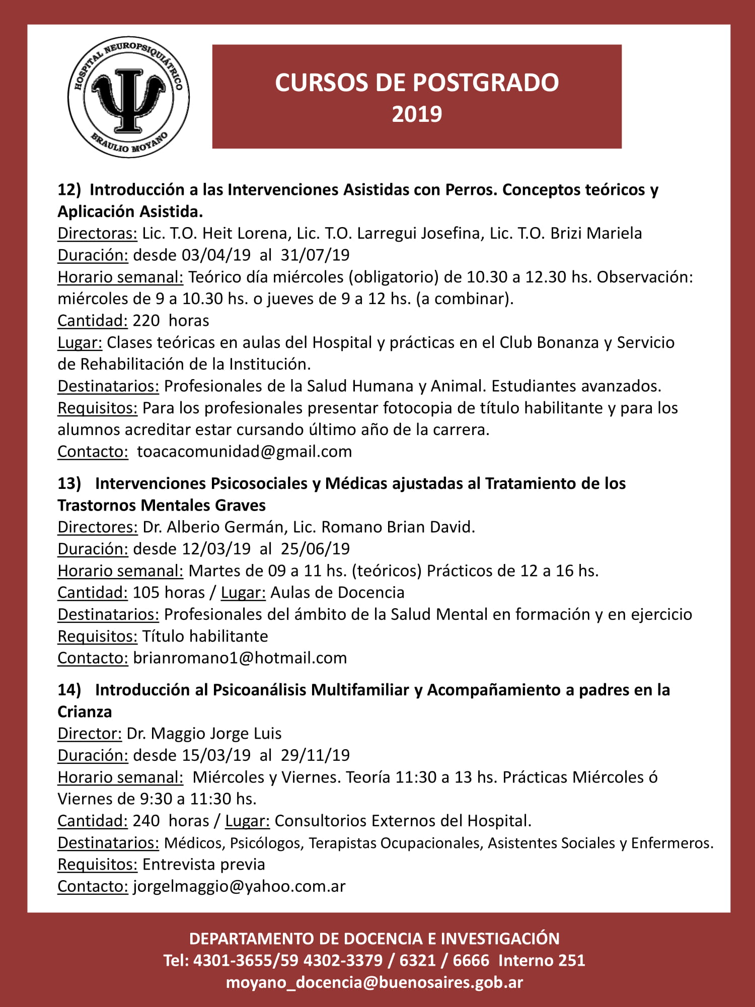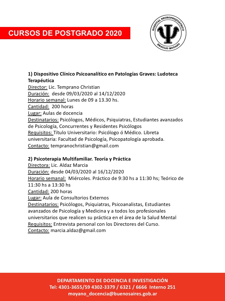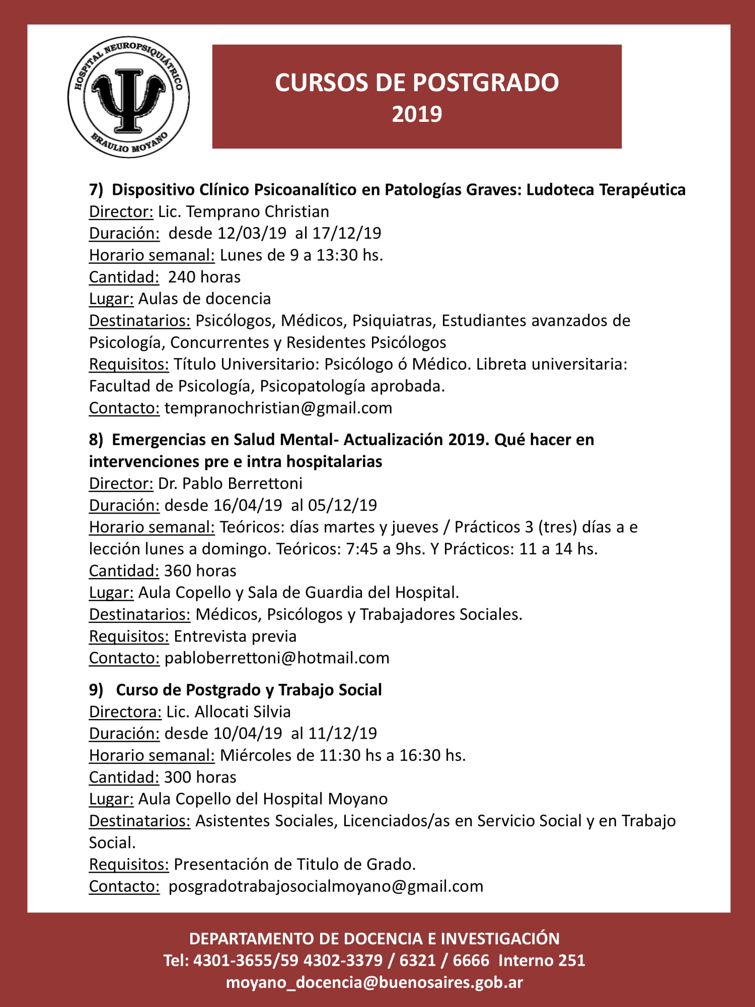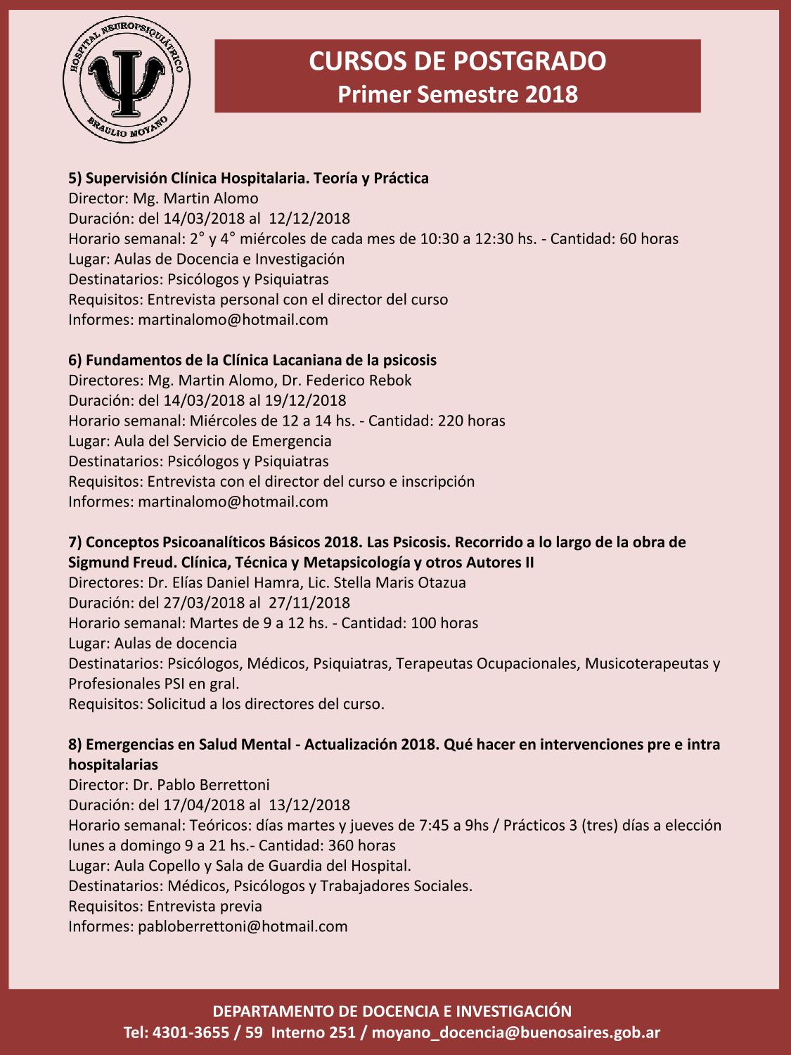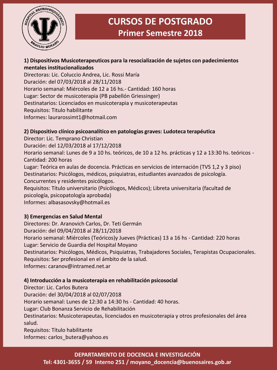 Informes e inscripción: admisionhospitalmoyano@gmail.com