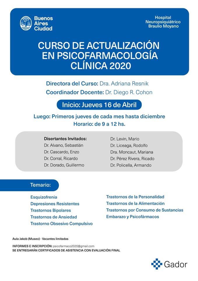 Lugar: Hospital Moyano y plataformas Meet / Zoom