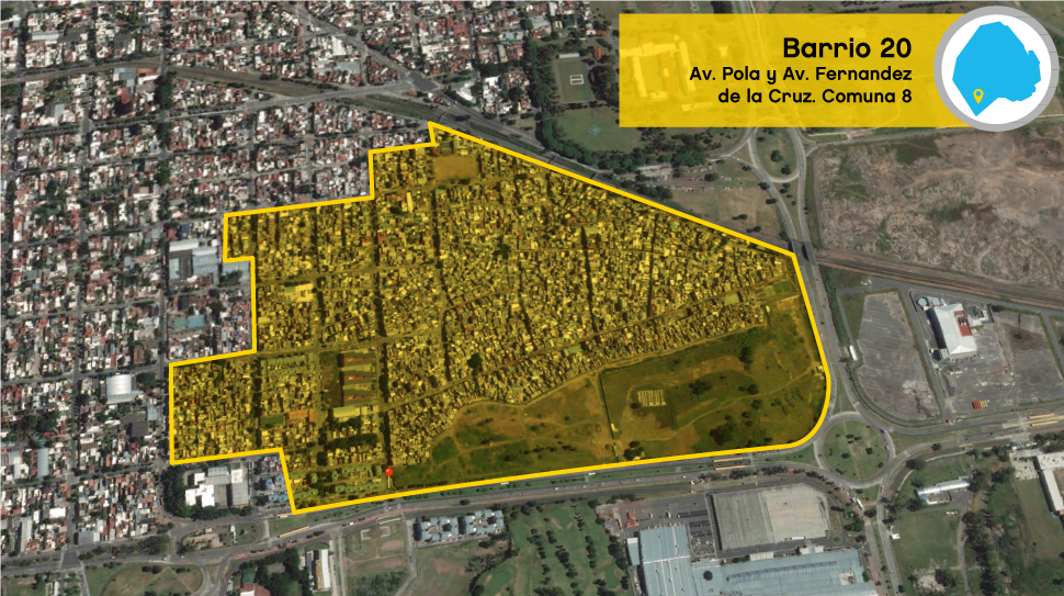 Según el censo realizado por el Instituto de Vivienda de la Ciudad en mayo 2016, en el barrio 20 viven 27.000 personas, 9119 familias; cuenta con 4581 viviendas y ocupa un espacio de 48 hectáreas.