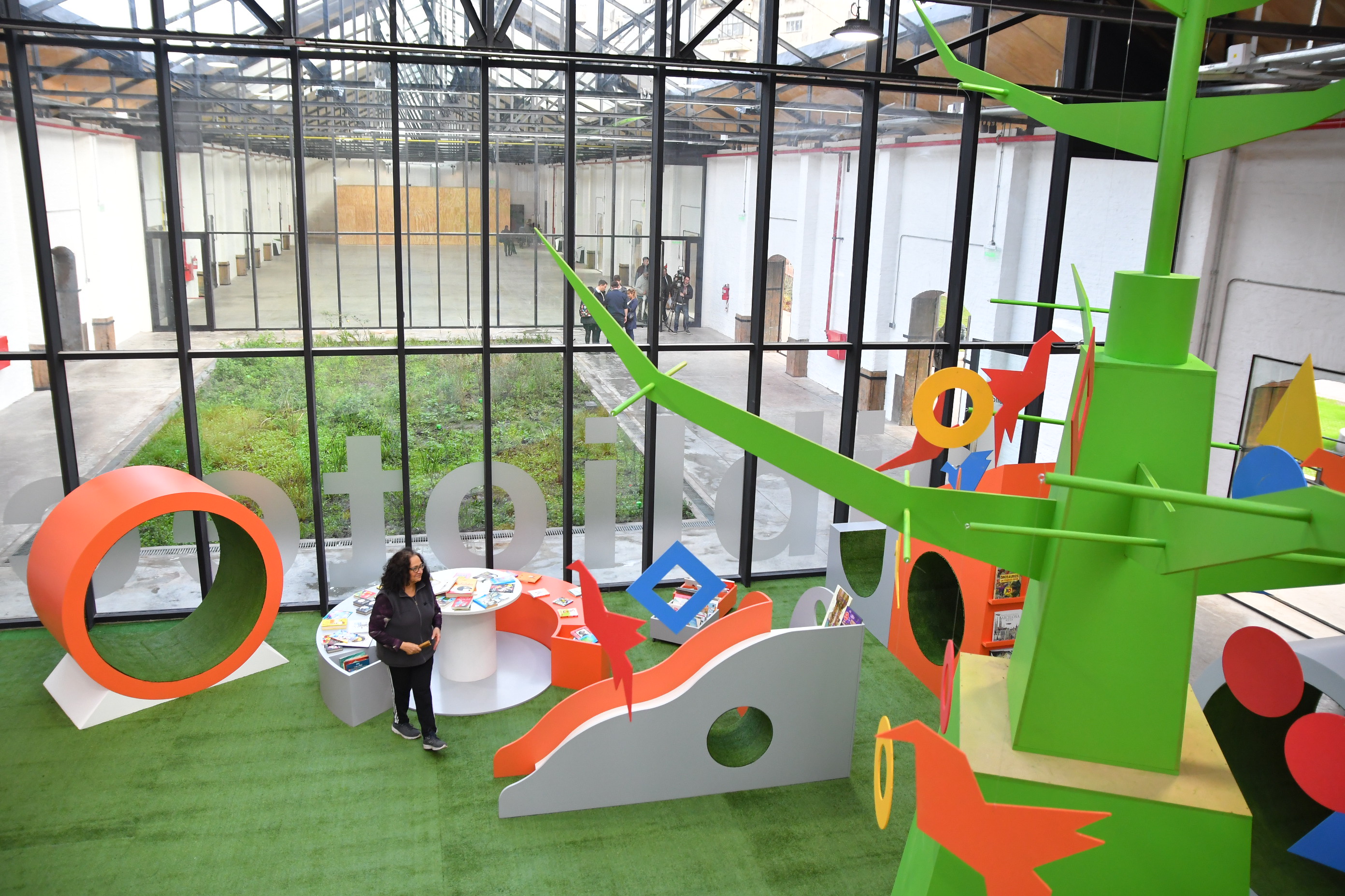 Hay una biblioteca de 700 metros cuadrados con espacios flexibles, mesas de trabajo compartido, livings de lectura, auditorio y exhibición de libros, además de un amplio espacio infantil con juegos lúdicos, zona de lectura y sala de producción.