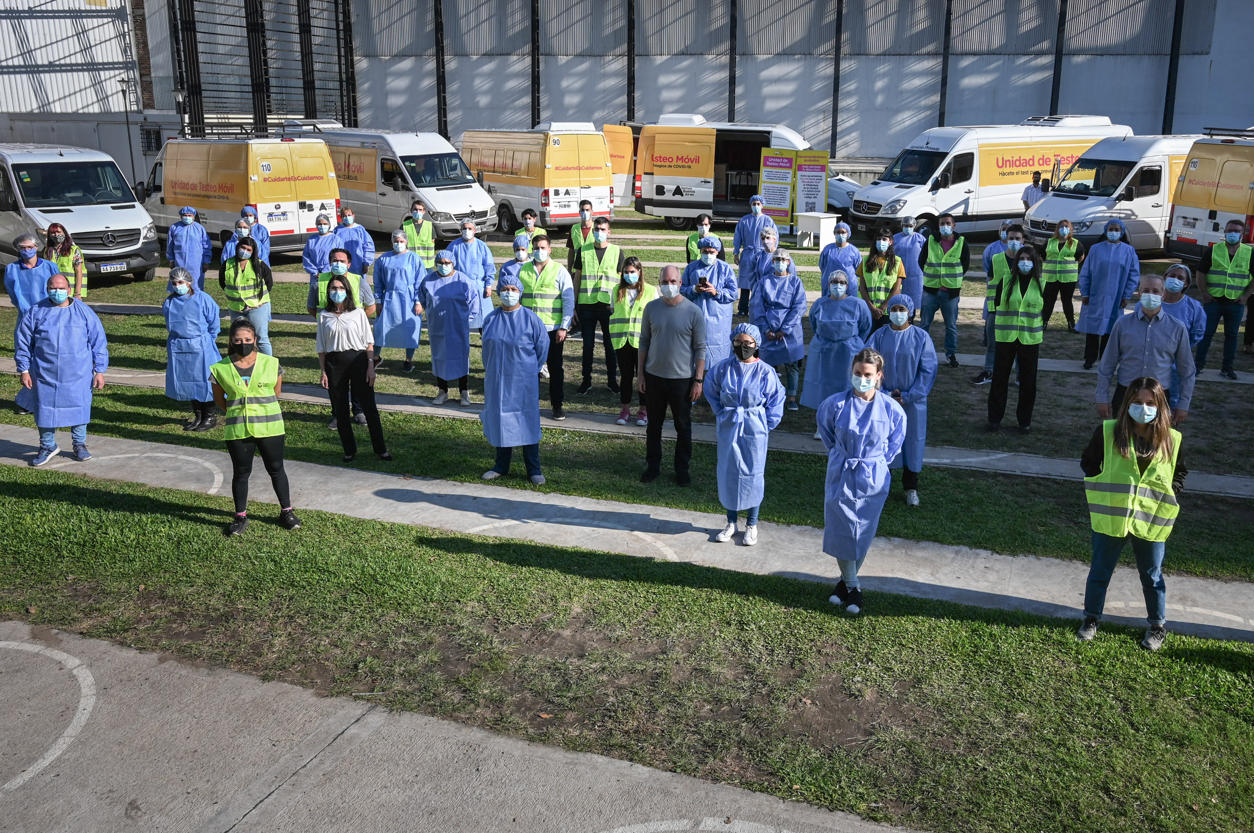 El jefe de Gobierno porteño, Horacio Rodríguez Larreta, presentó las 15 unidades de testeo móvil que funcionarán de lunes a viernes, de 14.30 a 20, en todas las comunas de la Ciudad y que se suman al dispositivo DetectAR, a los Centros de Testeo y a las Unidades Febriles de Urgencia. En éstas se testeará a aquellos vecinos que estén en contacto con personas en situación de riesgo.