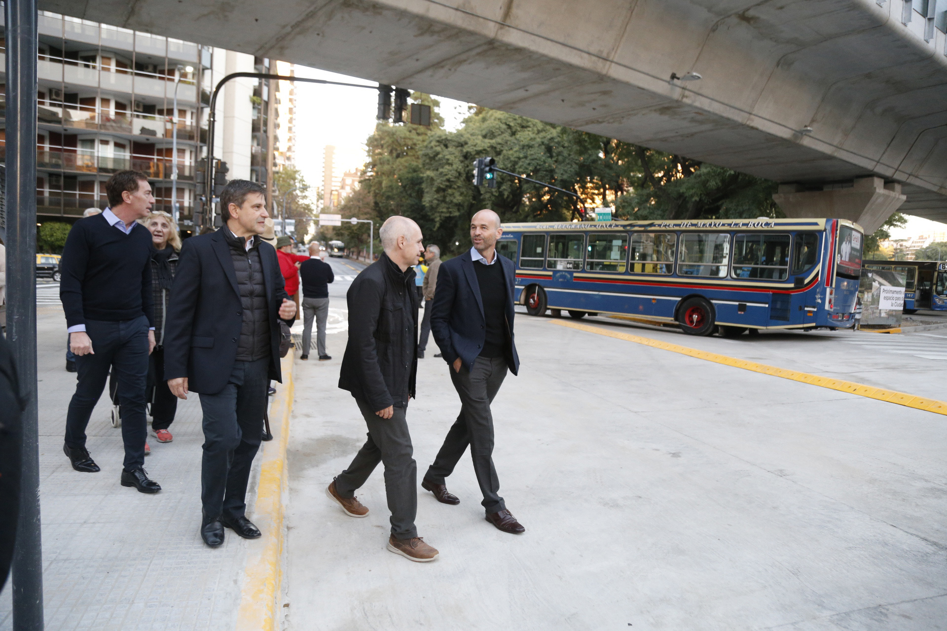 El jefe de Gobierno porteño, Horacio Rodríguez Larreta, y el ministro de Transporte de la Nación, Guillermo Dietrich, participaron de la reapertura sin barreras de la calle La Pampa en Belgrano, que había sido cerrada por las obras del Viaducto Mitre, el cual se inauguró el viernes pasado y permite que más de 650.000 vecinos ahorren hasta unos 20 minutos de viaje diarios.