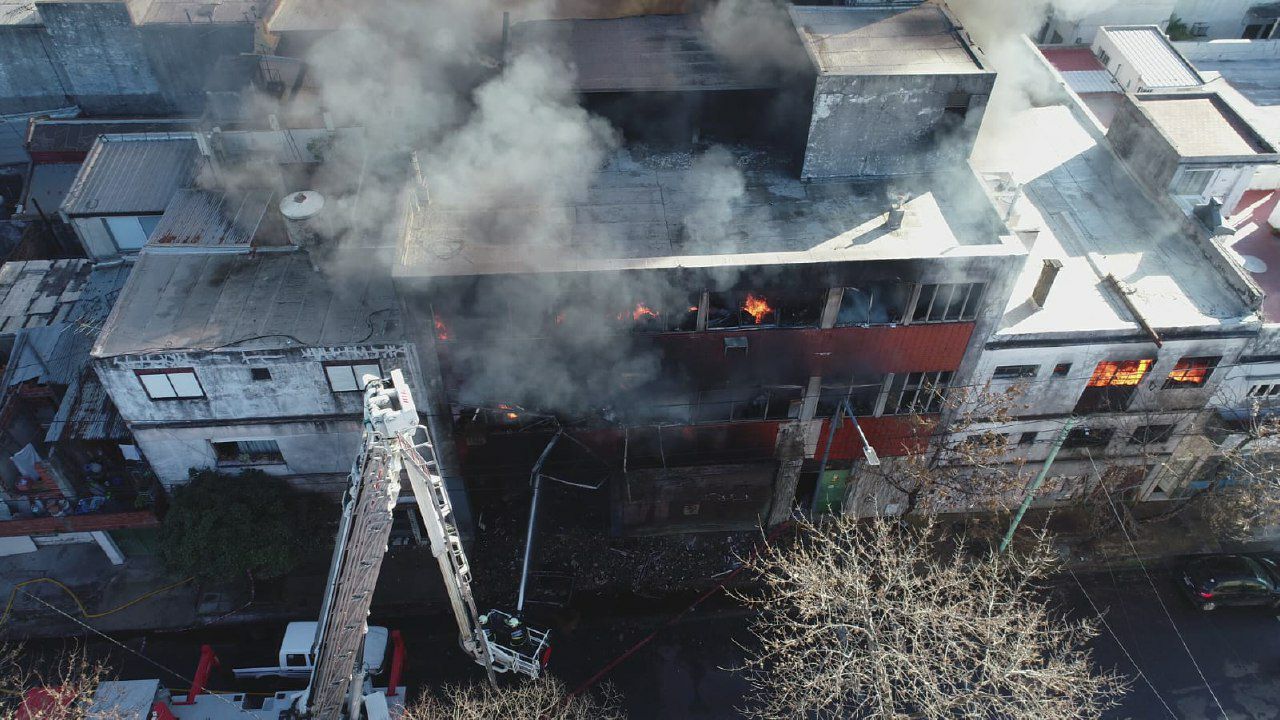 El fuego violento se desató en el contrafrente, en una extensión de 20 x 40 metros, con propagación al primer piso. Al arribo de los bomberos, se hallaron aerosoles y material inflamable que produjeron deflagraciones y explosiones. También cedió parte de la losa de la estructura siniestrada.