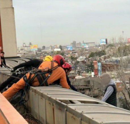 Una vez en el lugar, los bomberos observaron a un joven que, subido al techo de la galería peatonal del puente, amenazaba con arrojarse al Riachuelo. Comenzaron una conversación con la víctima para intentar que deponga su actitud.