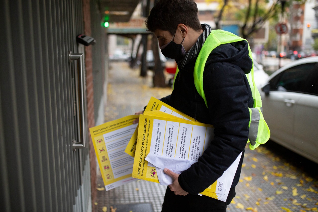 Más de 5.000 personas de todos los ministerios, secretarías y comunas del Gobierno de la Ciudad y personal de la Legislatura porteña salieron a la calle en las últimas horas a entregar el nuevo protocolo de prevención contra el covid19 en los más de 40.000 edificios que hay en Buenos Aires.