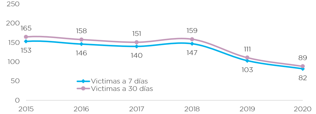 Nota: El número de víctimas fatales a 30 días se estima aplicando un factor de corrección de 1,08 a la cifra a 7 días, tal como lo recomienda la OMS.