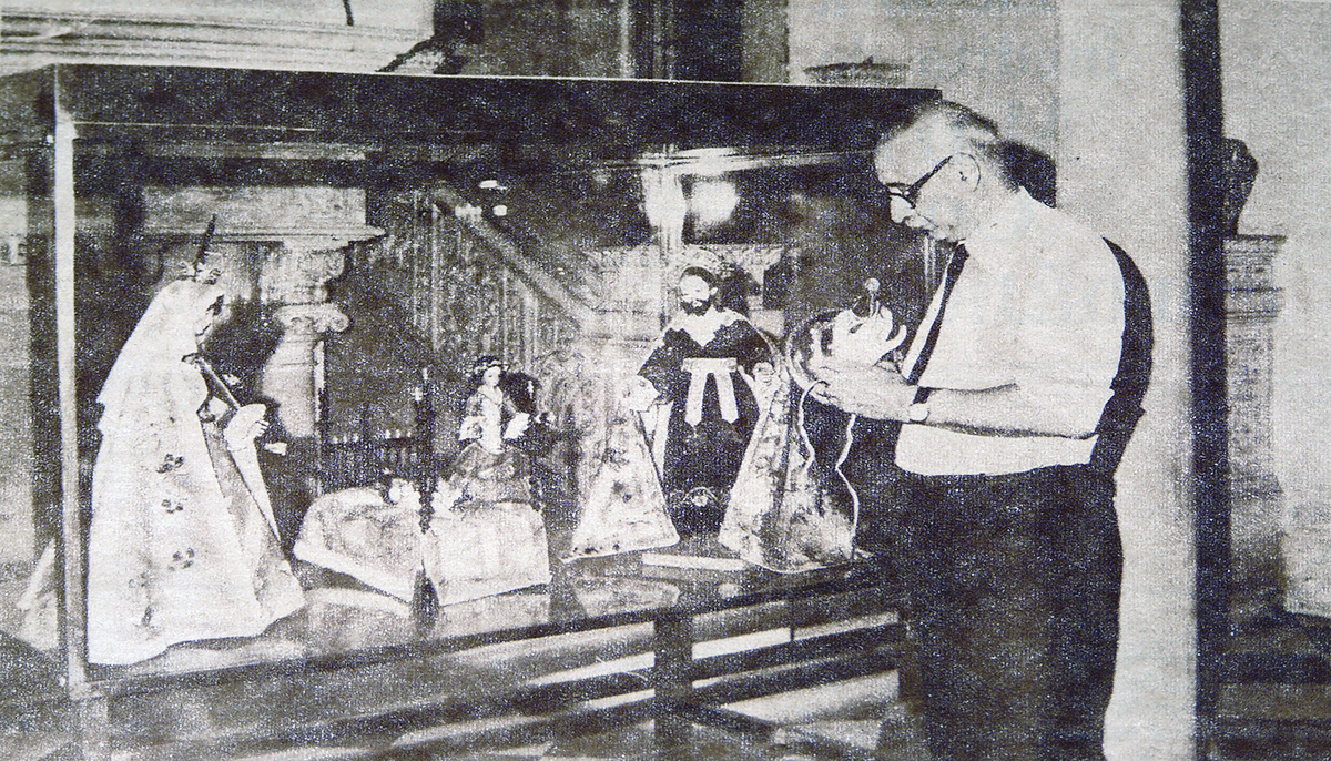 Enero, 1971. El Profesor Héctor Schenone durante el montaje de una exhibición en el Palacio Noel. Fue director del Museo Fernández Blanco entre los años 1966 y 1976.