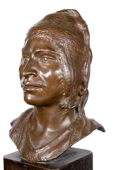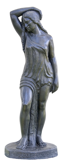 con el tocado característico de su clase. El grupo escultórico La oración alude a la