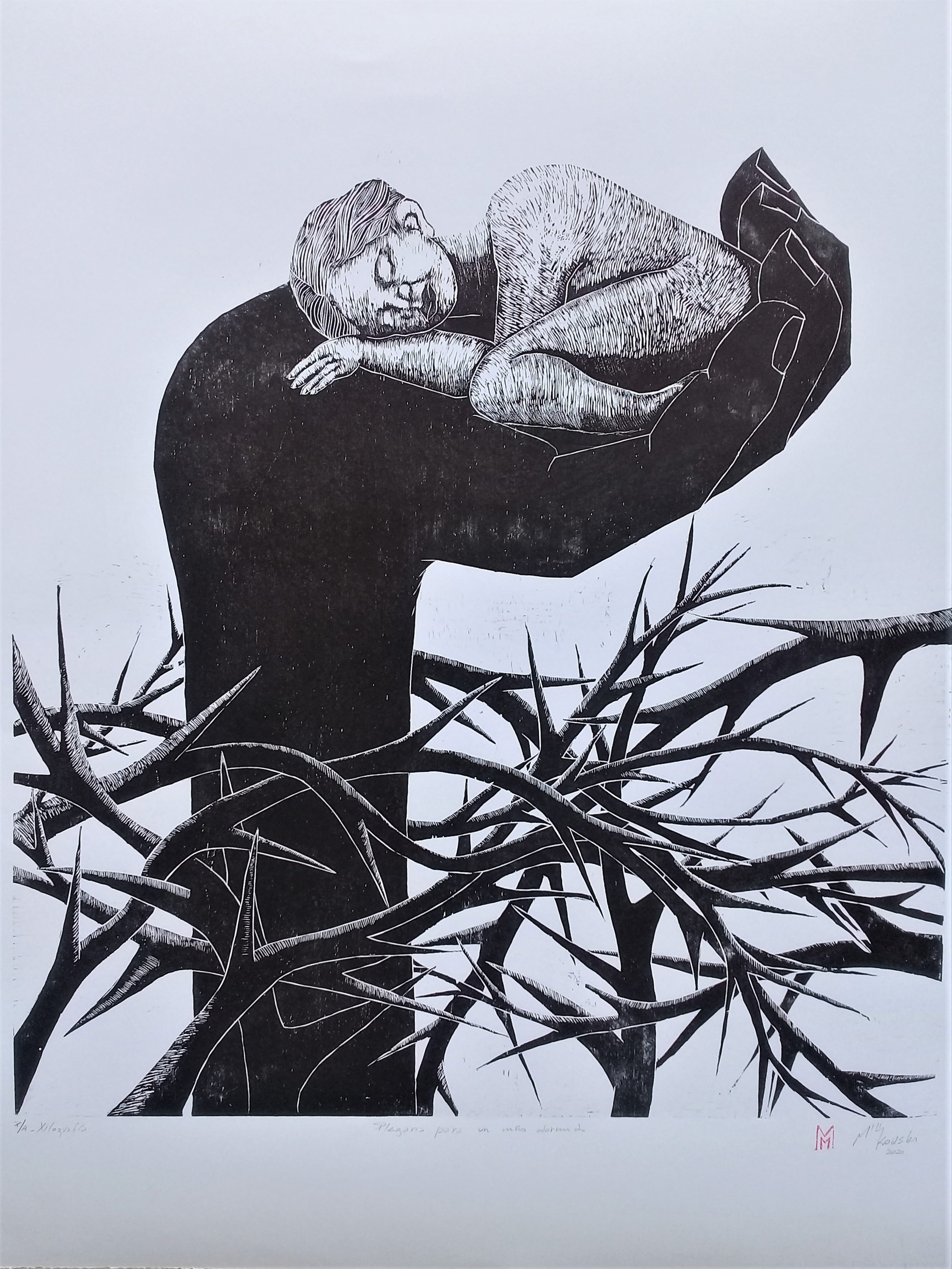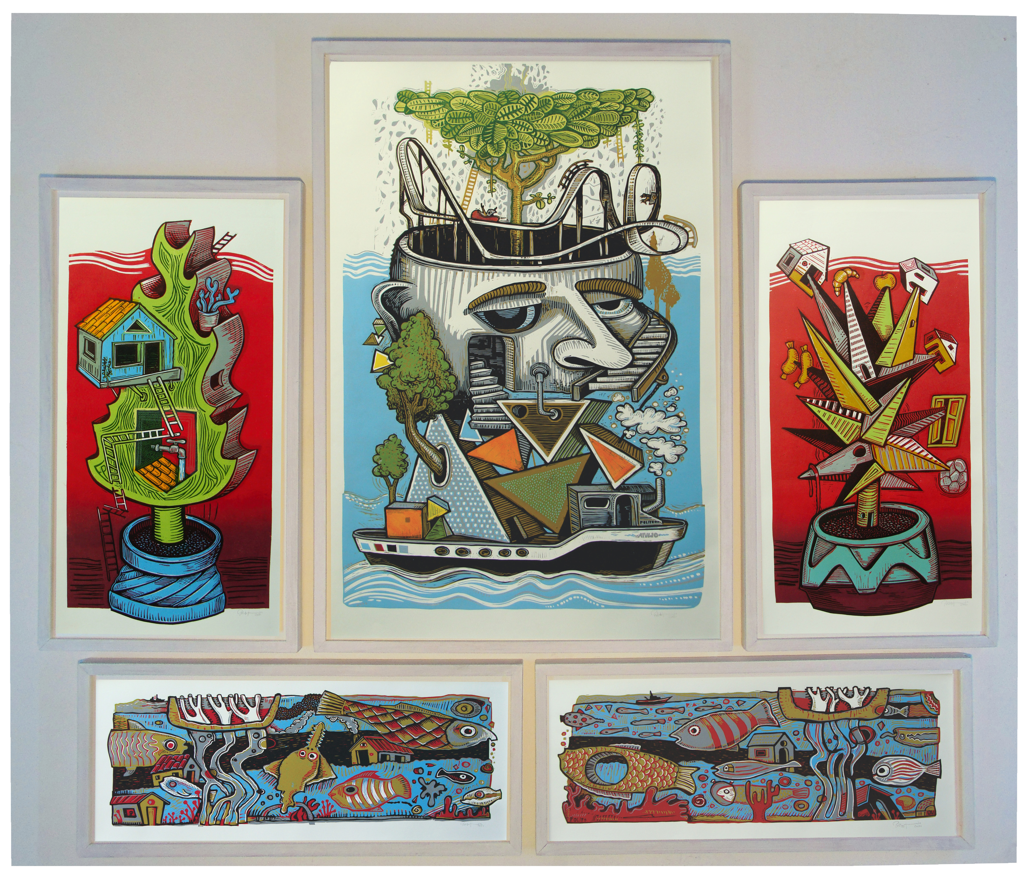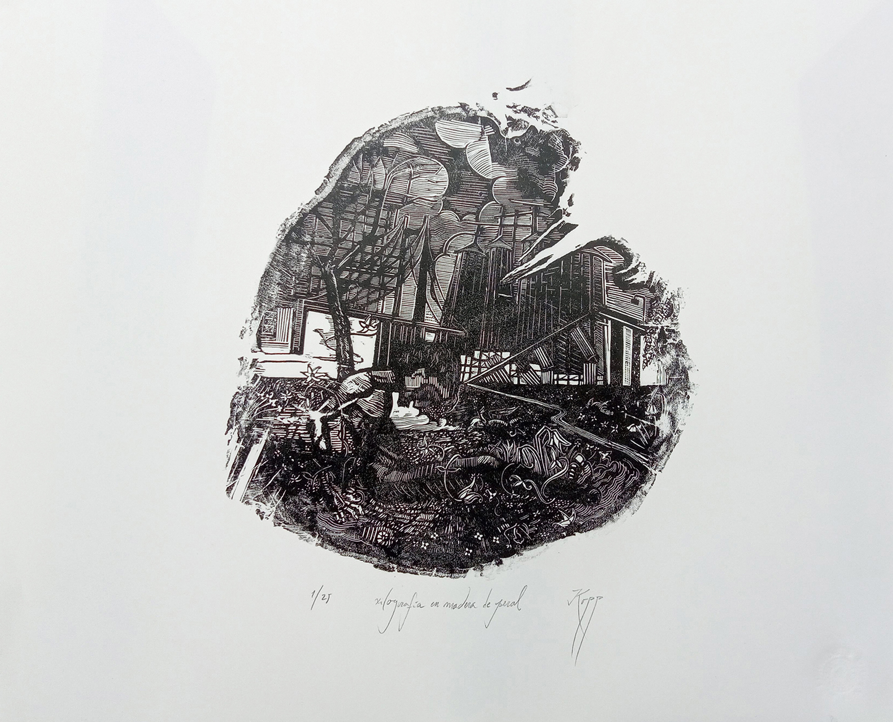 Litografía sobre Papel, intervenida con lapiz y acuarela