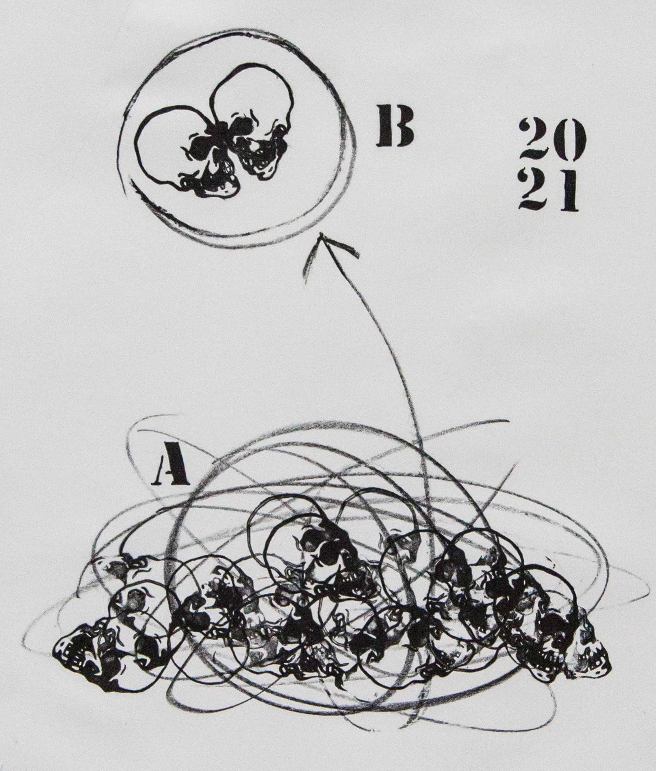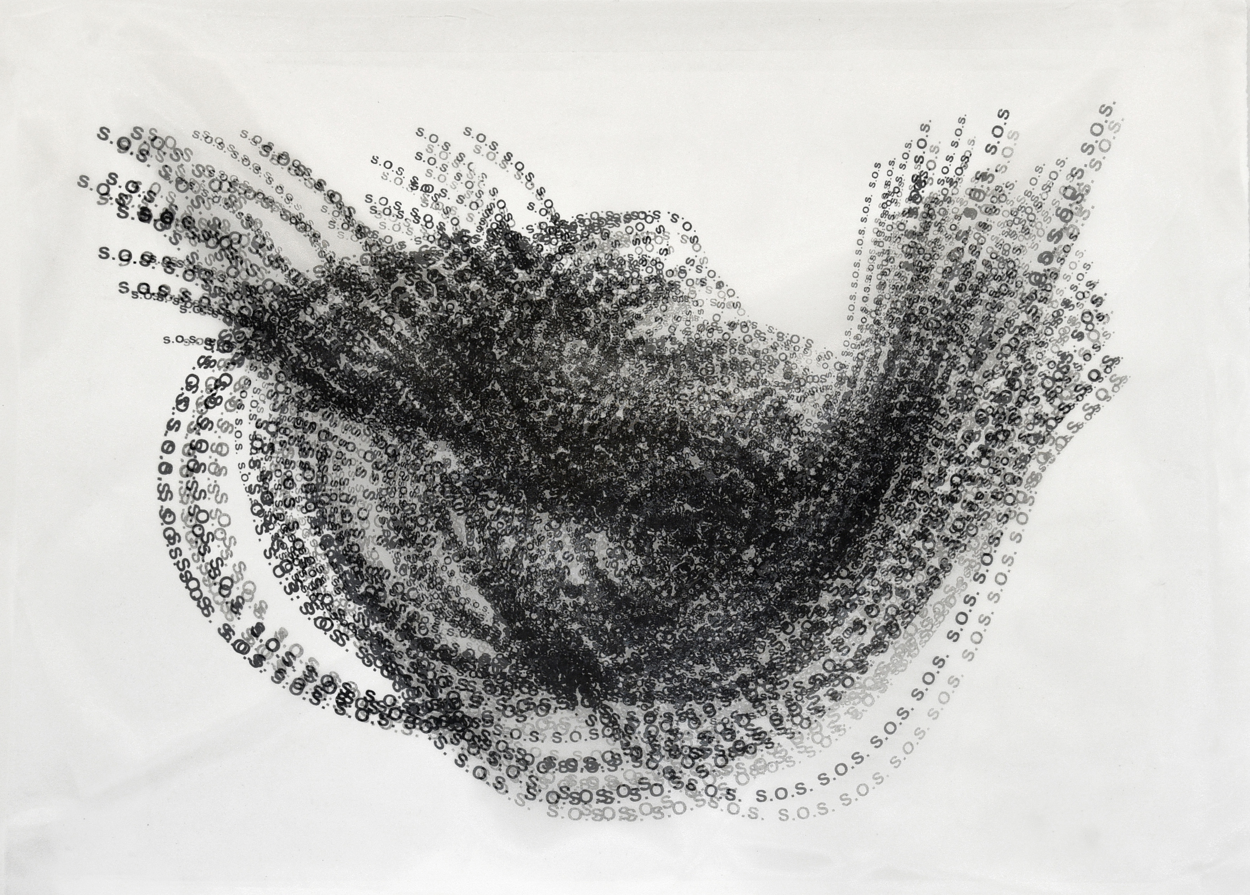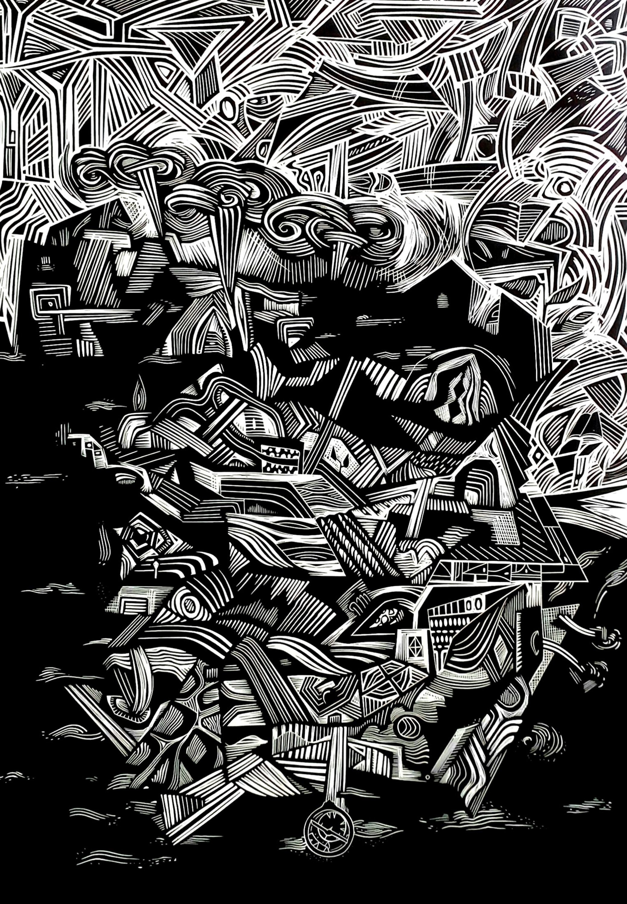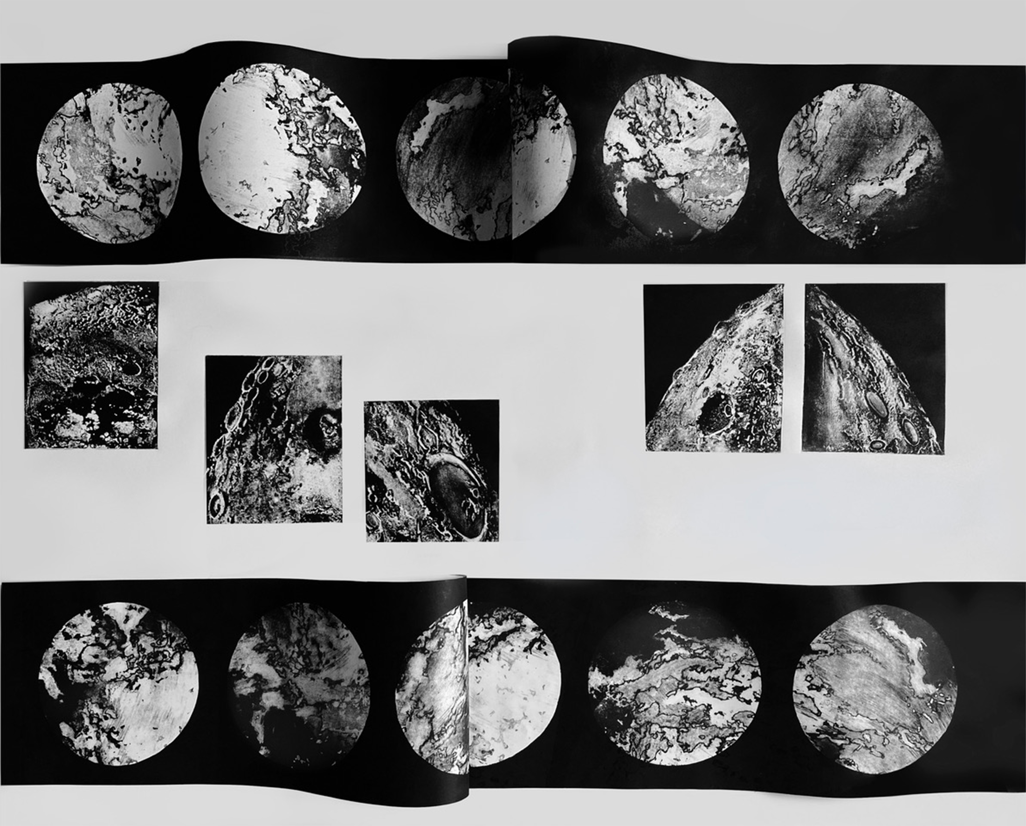 Fotolitografía sobre ambos papeles, el superior es papel Japón recortado y montado para jugar con la transparencia