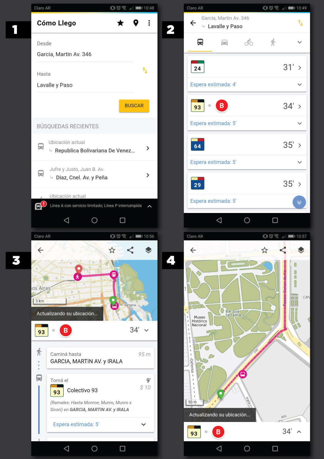 BA Cómo llego es la aplicación de la Ciudad que permite buscar desde el celular la mejor forma de realizar un recorrido, optimizando el tiempo, a través de los diferentes medios de transporte: público (colectivo, tren y subte), auto o a pie.