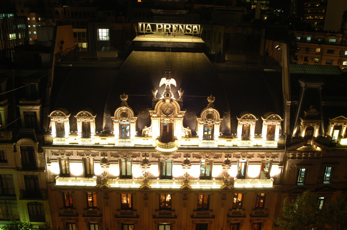 El edificio La Prensa - Casa de la Cultura, ubicada en el barrio de Monserrat, es la antigua sede del diario La Prensa y uno de los edificios del siglo XIX más lujosos de la Ciudad. Se encuentra muy cerca de la Plaza de Mayo y hoy pertenece al Gobierno de la Ciudad, que organiza allí distintos espectáculos, cursos y talleres, además de poseer oficinas públicas. Construido en 1898 por los ingenieros Carlos Agote y Alberto Gainza para albergar el diario de José C. Paz, fundador de La Prensa, cuenta con majestuosos interiores construidos por empresas francesas, entre los que se destaca el magnífico Salón Dorado, en el primer piso. El edificio (de seis pisos y dos subsuelos) se estructura en torno a un patio central. En su momento se lo dotó de la última tecnología de la época: un sistema de comunicación interna de tubos neumáticos, teléfonos y emisores y receptores de cables de noticias. Corona el edificio una magnífica farola de bronce dorado, representación de la diosa de la sabiduría Palas Atenea.