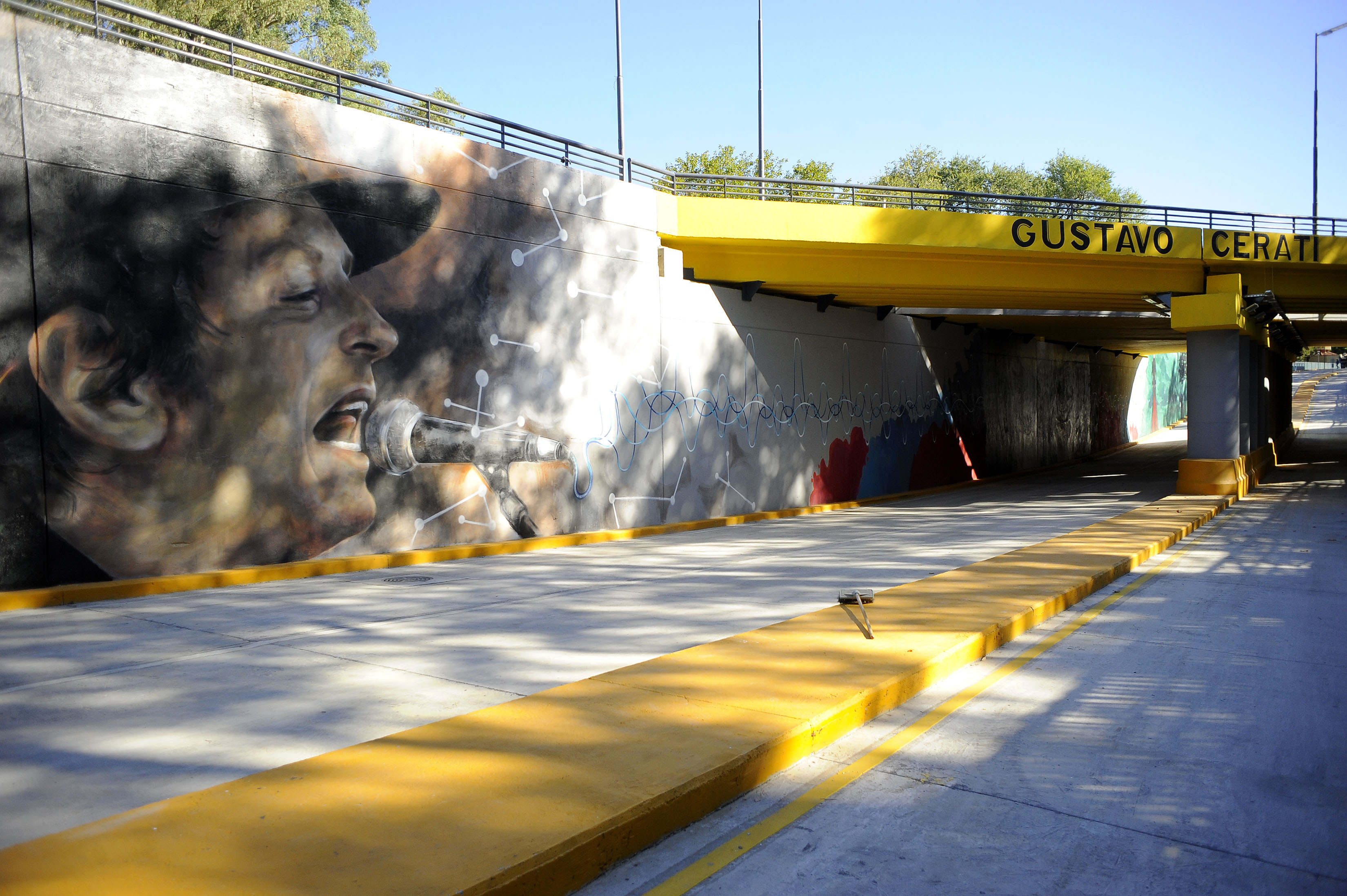Murales: en el túnel se hicieron murales relacionados a Gustavo Cerati, en relación al nombre del nuevo paso bajo nivel elegido a través de la votación de los vecinos.
