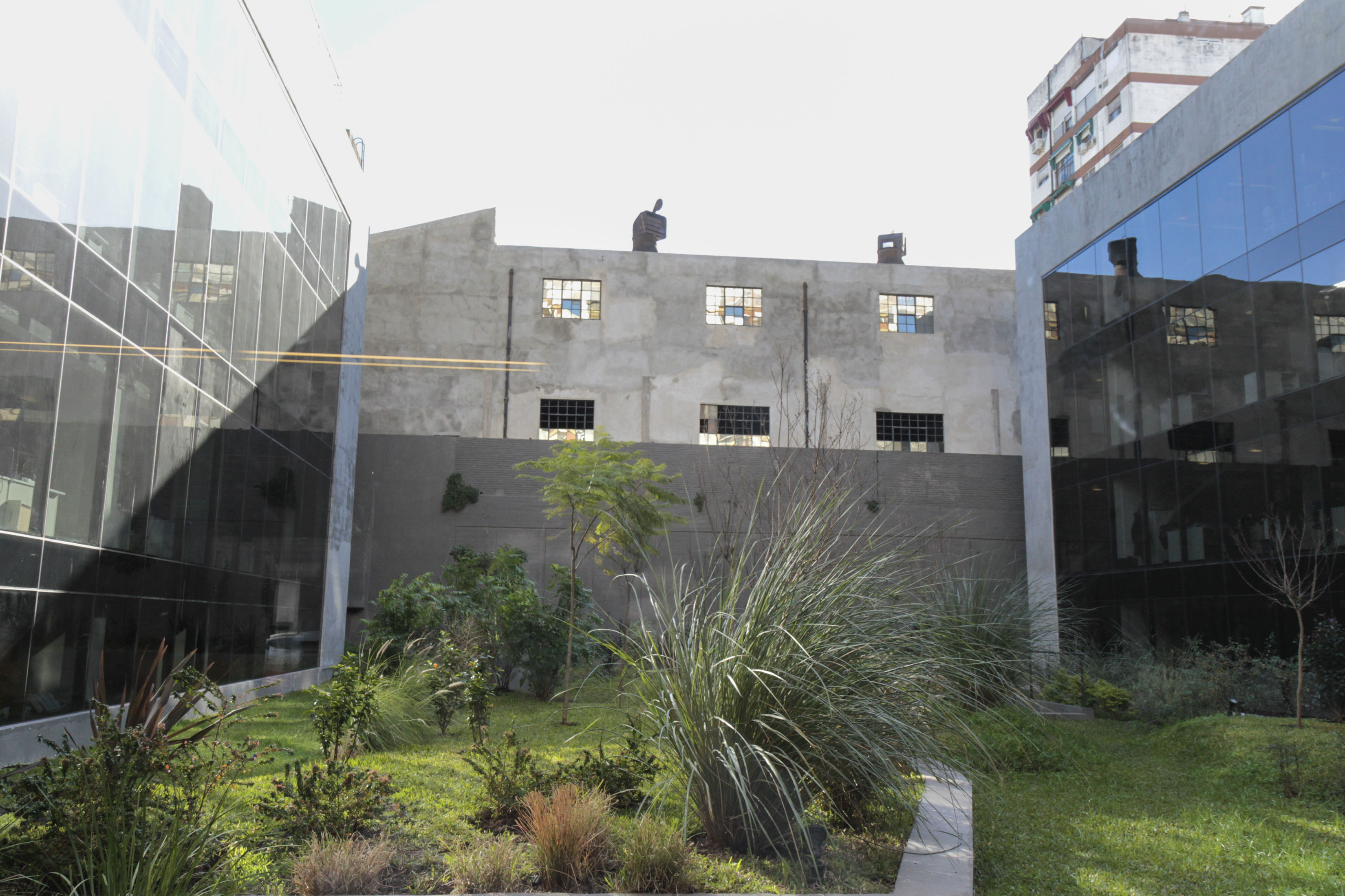Sus fachadas interiores están unidas por un pulmón verde destinado al descanso y rélax del personal, al igual que parte de la terraza.