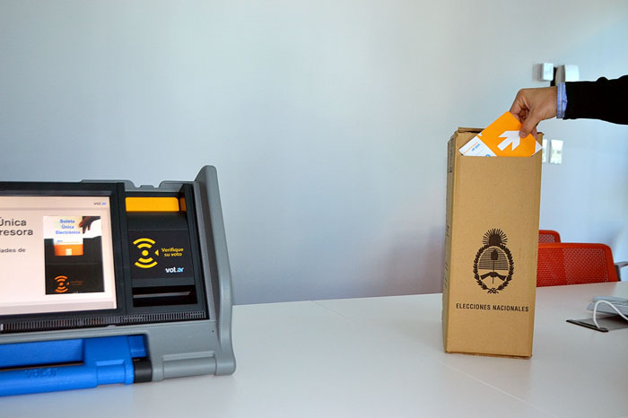A diferencia del voto electrónico, la maquina vot.ar no almacena la información de voto sino que la registra e imprime en una boleta que luego se deposita en la urna.