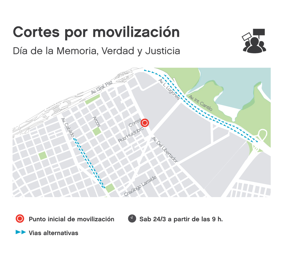 Vías alternativas: av. Leopoldo Lugones, av. Int. Cantilo, av. Cabildo.