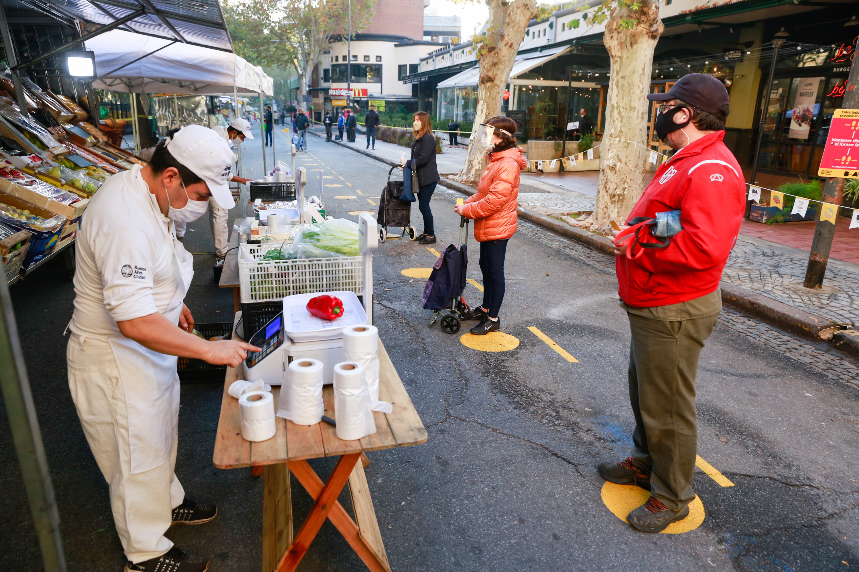 Los vecinos no podrán estar en contacto con la mercadería del puesto y deberán mantener una distancia mínima de 1.5 metros entre ellos. Para eso habrá señalización en el piso y cada feriante organizará las filas con números. Se ofrecerá atención prioritaria a adultos mayores y embarazadas.