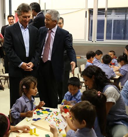 “Nunca antes Beijing había hecho un convenio de este tipo. Lo hemos logrado y estamos seguros de que este modelo de integración nos va a dar muchas satisfacciones, porque construye futuro para nuestros chicos y jóvenes”, afirmó Macri esta tarde luego de recorrer las instalaciones de la escuela infantil Nª 11, ubicada en la calle Los Patos 3042, en el barrio de Parque Patricios.