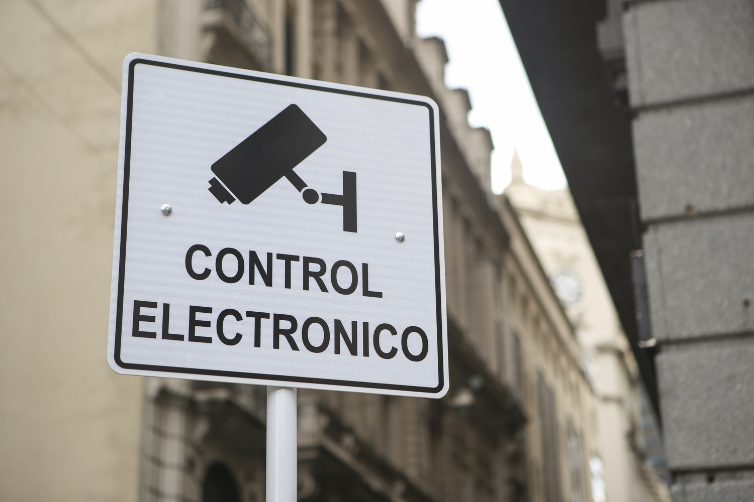 Un cartel vial indica que el área está monitoreada electrónicamente.