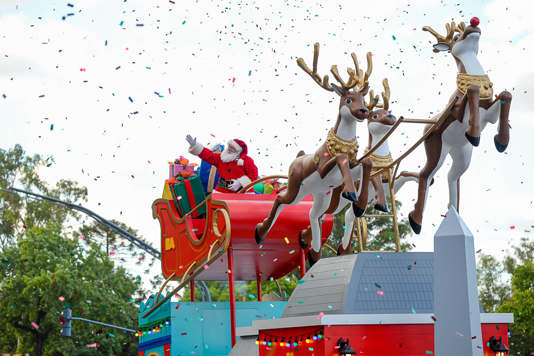 El desfile contó con más de 350 artistas, 200 bailarines y seis carrozas gigantes acompañadas de patinadores, acróbatas y cantantes que marcharon por las calles al ritmo de las canciones navideñas en un espectáculo libre y gratuito para toda la familia.