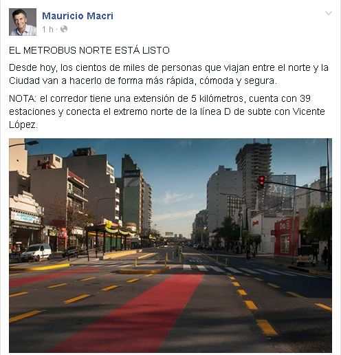 El jefe de Gobierno de la Ciudad de Buenos Aires, Mauricio Macri, y el intendente de Vicente López, Jorge Macri, inauguraron el Metrobus Norte, que une ambos distritos a través del eje Cabildo - Maipú, y que les permitirá a unas 200.000 personas por día acortar los tiempos de viaje en el transporte público de pasajeros.