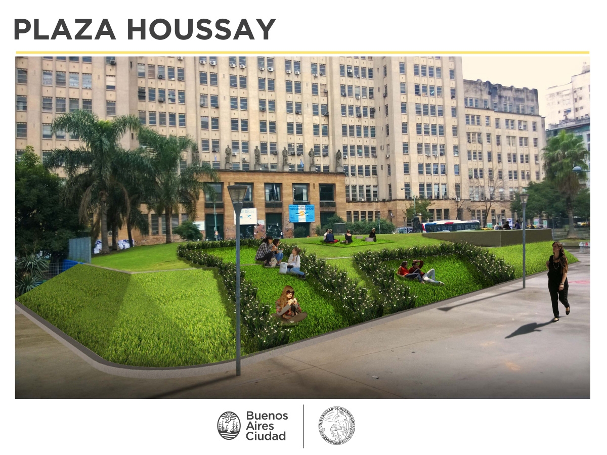 La plaza, que recuerda al premio Nobel de medicina Bernardo Houssey, tendrá un nuevo diseño que incluirá una cancha de fútbol, otra de básquet y un skate park.